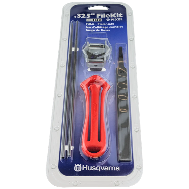 Complete vijlkit om het werk simpeler te houden. Met een correct geslepen ketting, zult u veiliger en comfortabeler werken. De vijlkit bestaat uit een vijlhandvat, combimal of vijlmal met een dieptesteller, twee ronde vijlen en een platte.
