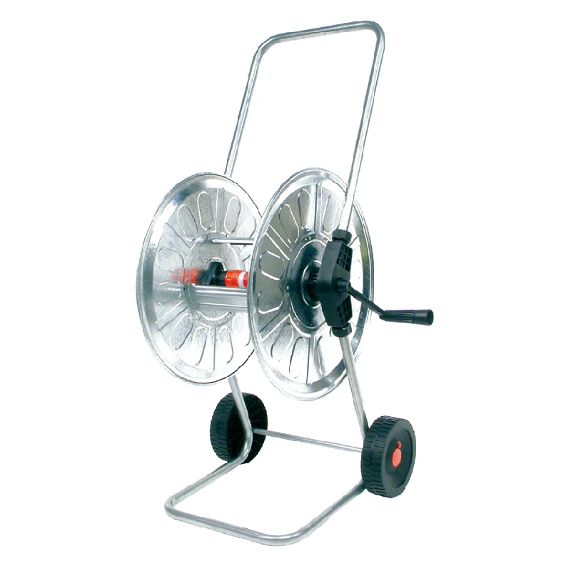 Deze verzinkte haspel is geschikt voor het opbergen van uw tuinslang. Deze haspel is voorzien van een stevige voet, zodat de haspel niet snel kantelt. Ook heeft hij twee wielen zodat u de haspel handig kunt verplaatsen. In het wiel van de haspel zit een snelkoppeling voor het aansluiten van de tuinslang. Aan de zijkant van het wiel zit een snelkoppeling voor het aansluiten van de tuinslang aan de kraan. Aan de ander zijkant zit een zwengel, zodat u de slang na gebruik makkelijk kunt oprollen.