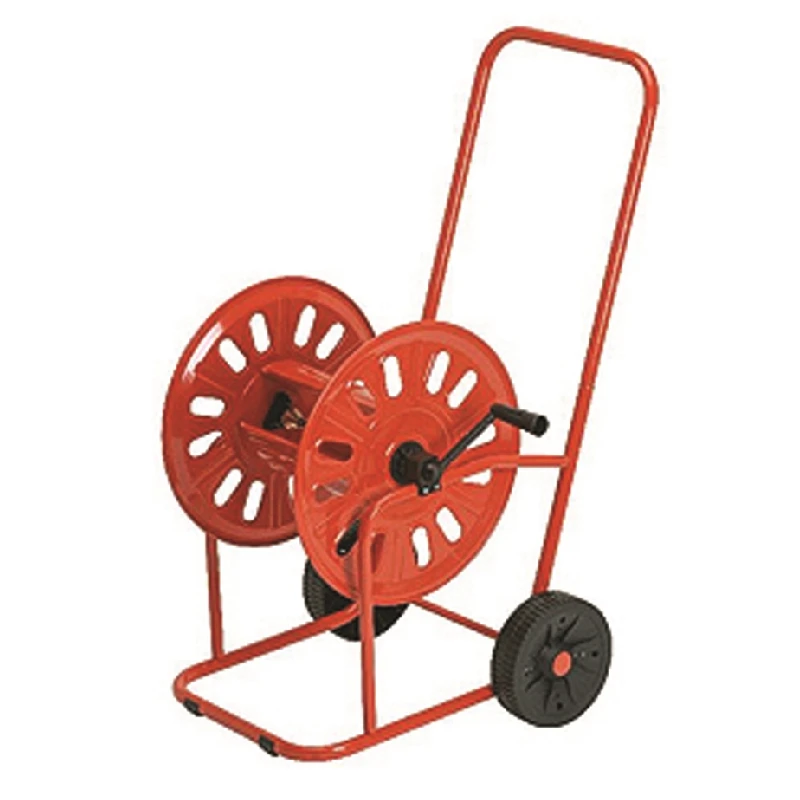 Deze metalen haspel is geschikt voor het opbergen van uw tuinslang. Deze haspel is voorzien van een stevige voet, zodat de haspel niet snel kantelt. Ook heeft hij twee wielen zodat u de haspel handig kunt verplaatsen. In het wiel van de haspel zit een snelkoppeling voor het aansluiten van de tuinslang. Aan de zijkant van het wiel zit een snelkoppeling voor het aansluiten van de tuinslang aan de kraan. Aan de ander zijkant zit een zwengel, zodat u de slang na gebruik makkelijk kunt oprollen.